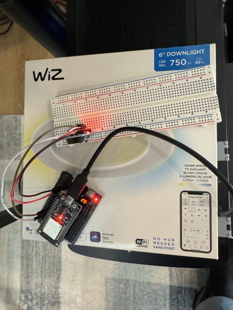 I was so sold that when I saw some Wiz pot lights on Amazon clearance I snapped them up. I thought they would make a great addition to my office. A few challenges though. The lights need non-corporate wifi and a hub to send commands — neither of which I had in my office..